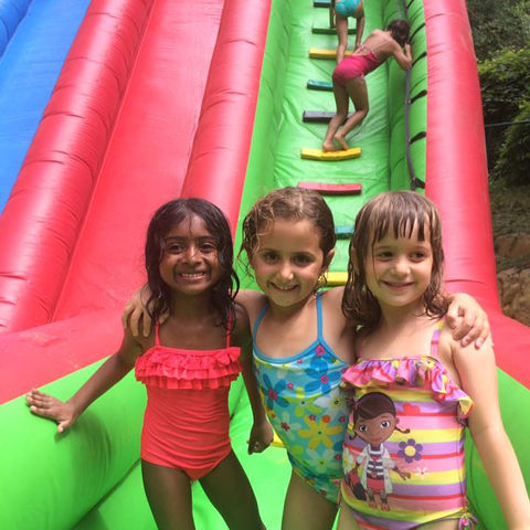 Our center consists of 5 acres of land, 12 classrooms, each uniquely designed to support your child's development from infancy to school age. We have over 20 age appropriate playgrounds, which includes a transportation playground, a "beach", the backyard, 2 water slides, climbing wall, zipline, tree house, clubhouse, nature trail, cycling area, western town area, basketball, soccer and soft ball field, gaga arena, mini golf, a gazebo and much more. In addition to the mini libraries contained within each classroom, our facility houses a large shared library which provides all of our teachers additional materials to support the topics being taught in class. Integration of technology is another important component of our program. Preschool age classrooms are equipped with iPads and computers to further enhance the lessons taught. Children from 2-3 years old take part in our enrichment classes. (ie. Creative Movement, Library, & soccer*) Children 3-5 years old take part in our enrichment classes. (ie. Gymnastics, Yoga, Soccer* & Library)